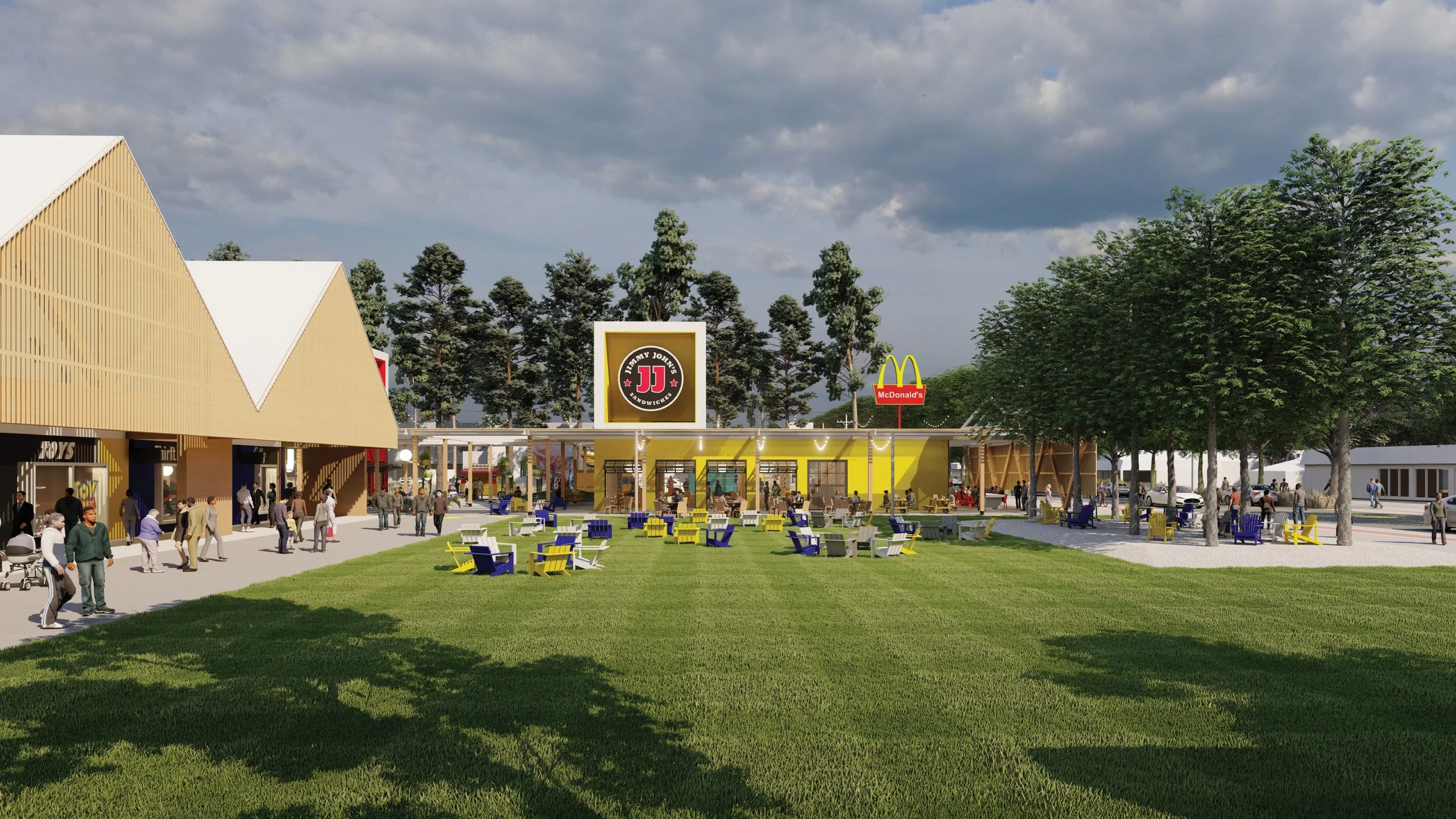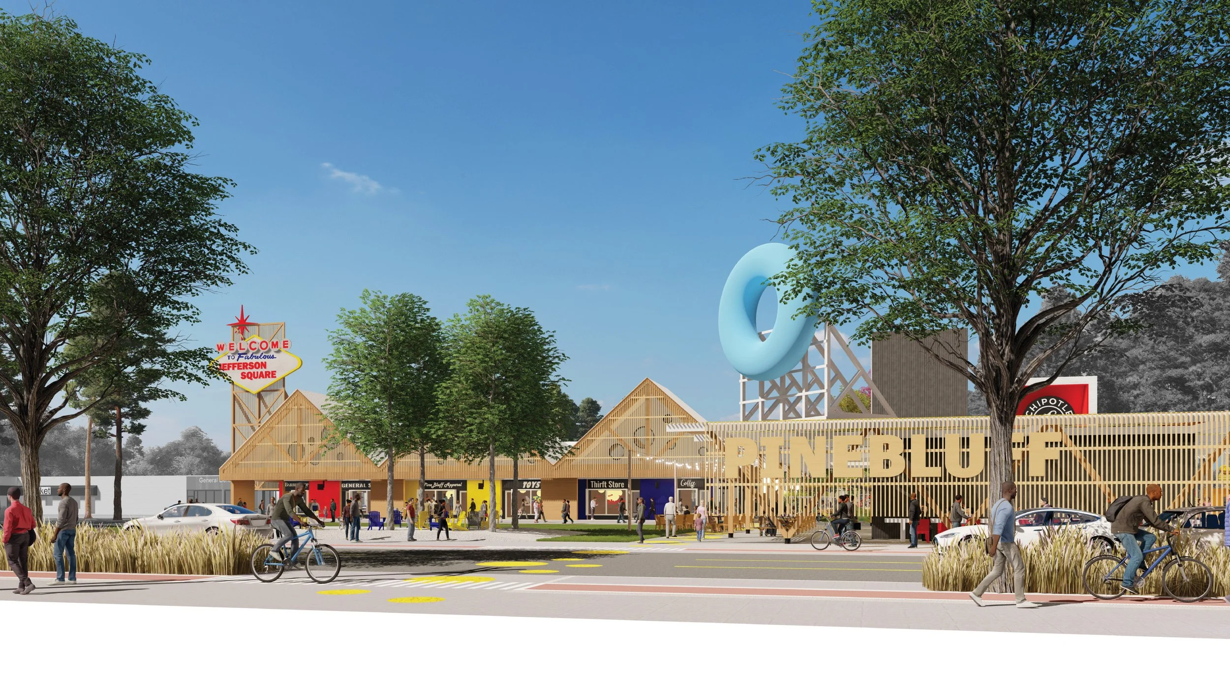 This adaptive reuse of an underutilized 1960s strip shopping center grounds with 1,700 parking spaces—equivalent in area to 14 city blocks—provides a new community anchor for the South Central Neighborhood in Pine Bluff, Arkansas. The repair project has two objectives: 1) connect the shopping center grounds with its surrounding neighborhood; and 2) infuse neighborhood structure (walkability, mixed uses, pedestrian-oriented spaces, etc.) into the adaptation of the parking lot.
